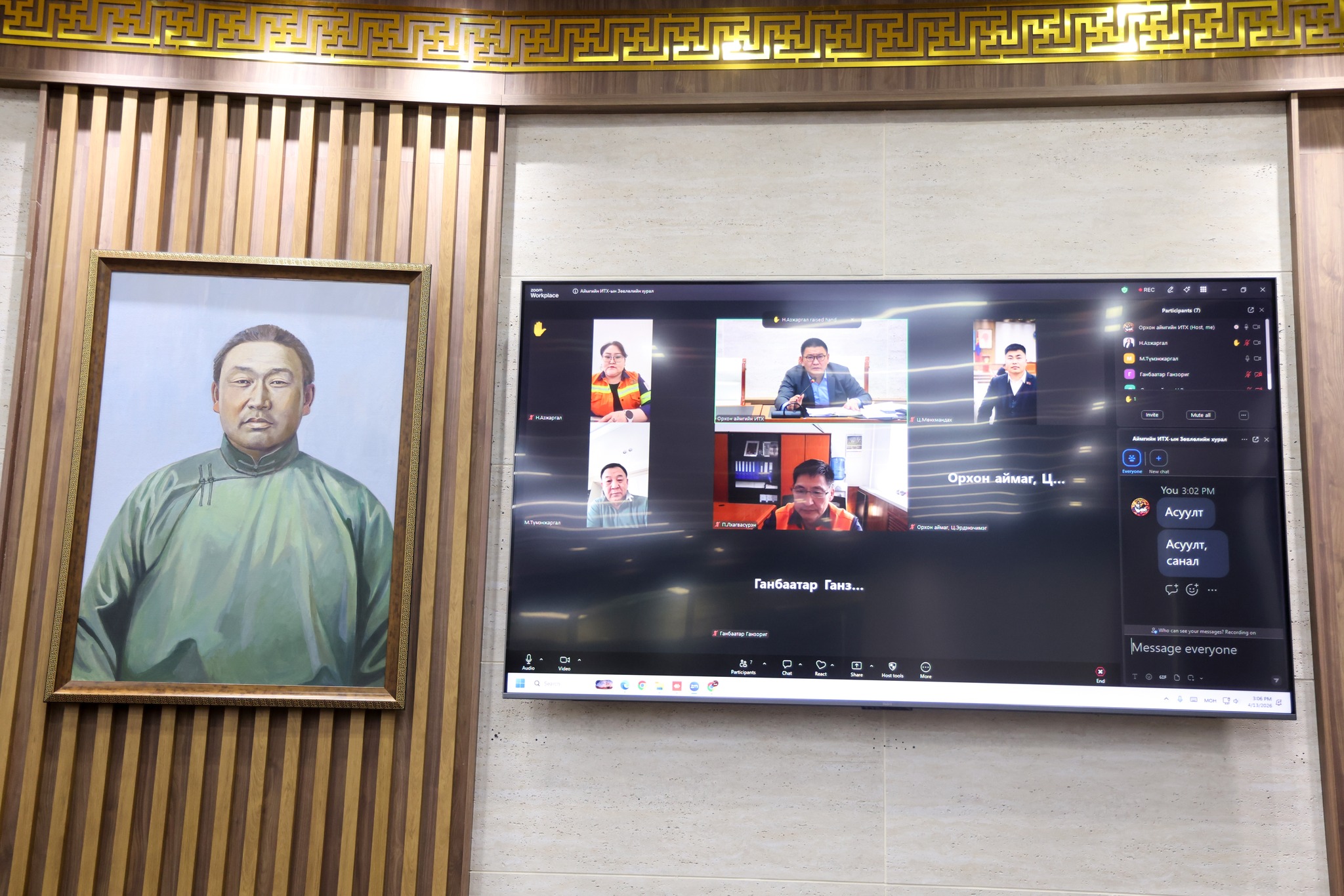 Орхон аймгийн ИТХ-ын Зөвлөлийн 5 дугаар хуралдаан өнөөдөр цахимаар (2026.04.13) хуралдаж, аймгийн ИТХ-ын ээлжит бус X хуралдаанаар хэлэлцэх асуудлуудыг бэлтгэл хангасан үзэж хуралдаанаар хэлэлцэхээр дэмжлээ.